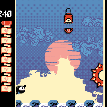 Our main character is a one eyed ninja facing waves of yokais in order to clean the ancient japanese scroll.