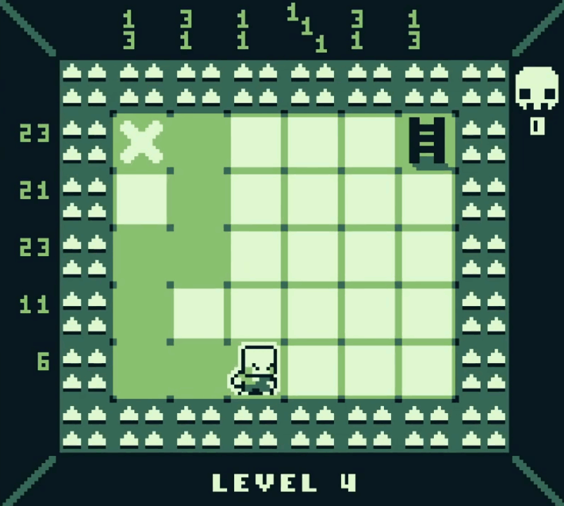 This time around there may only be spikes but the entire floor is hidden! Use the clues given by the nonogram to find your way to the stairs, be careful not to stumble onto any spontaneous spikes along the way!