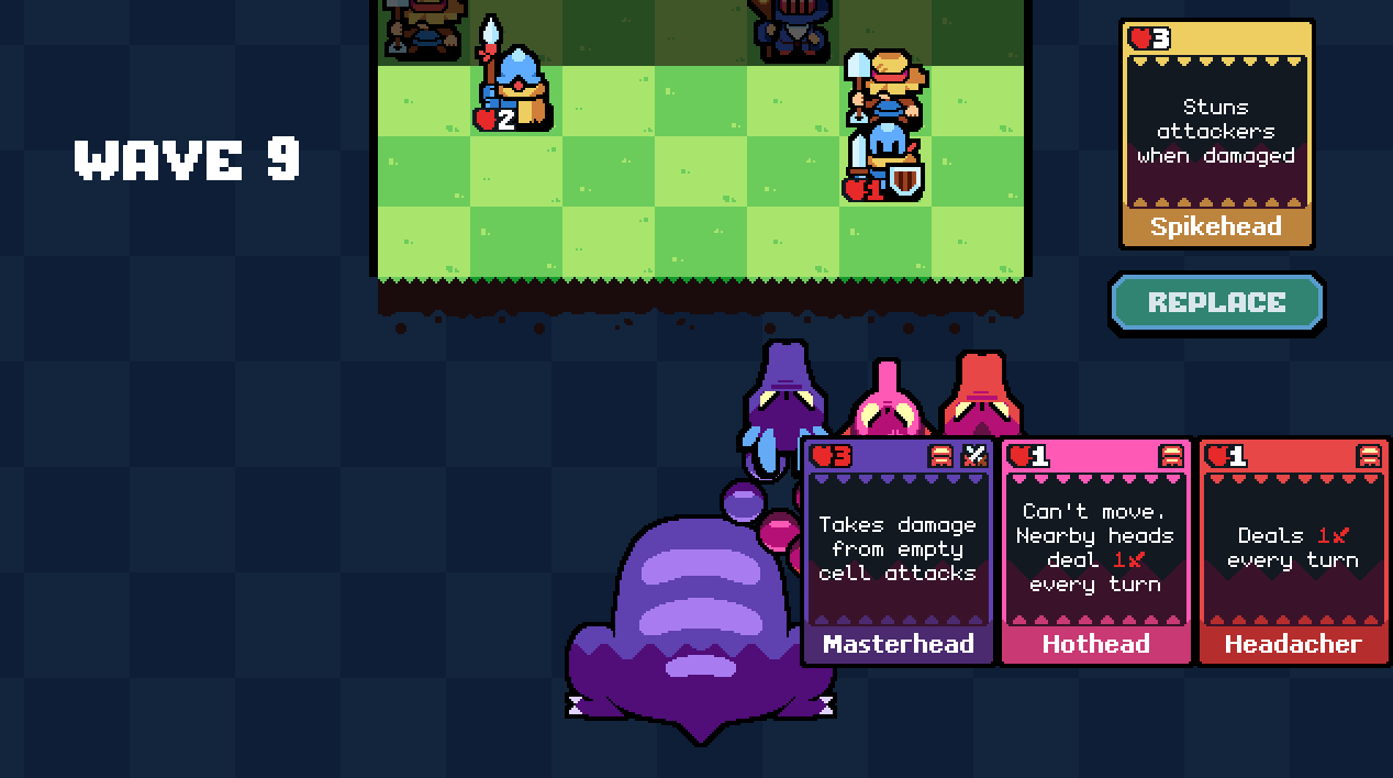 Defeat waves of greedy adventurers by summoning Hydra Heads. An endless rogue-like deck builder hydra simulator!